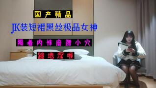 JK装短裙黑丝极品女神,隔着内裤磨蹭小穴,换上女仆装跪地深喉,怼着大屁股交叉姿势就是操